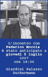 Federico Moccia che incontrerà il pubblico giovedì 5 luglio 2007 anziché il 10 come precedentemente comunicato.