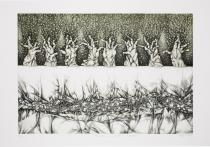 Dal dialogo tra due diverse poetiche, due diverse declinazioni nell"uso di acquaforte, acquatinta e bulino, nascono inedite suggestioni.
