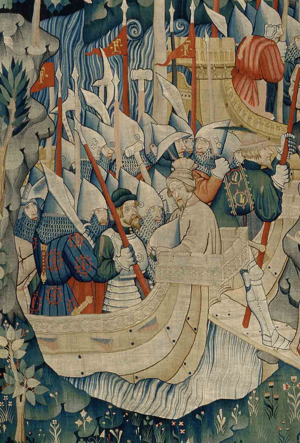 Costituisce il più antico panno istoriato superstite dedicato a una chanson de geste. La storia di Jourdain è raccontata dal chierico raffigurato in piedi sulla sinistra dell'arazzo. Fromont, discendente della stirpe del traditore Gano, accompagnato da una nutrita schiera di armati, si dirige via mare da Bourdeaux a Blaye, sull'estuario della Gironda, per uccidere il nipote Gerart, signore di quella città e impossessarsi del potere. Ma Gerart sarà vendicato dal figlio Jourdain, come la scena allegorica ai piedi del narratore lascia intendere.